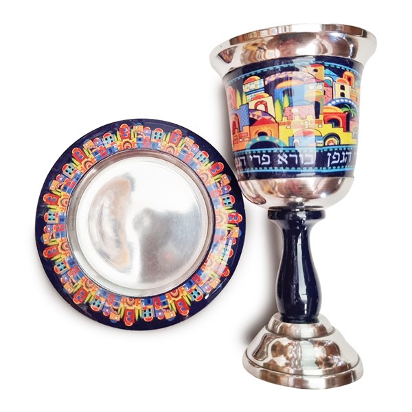 גביע לקידוש בציפוי ניקל בצבע כחול