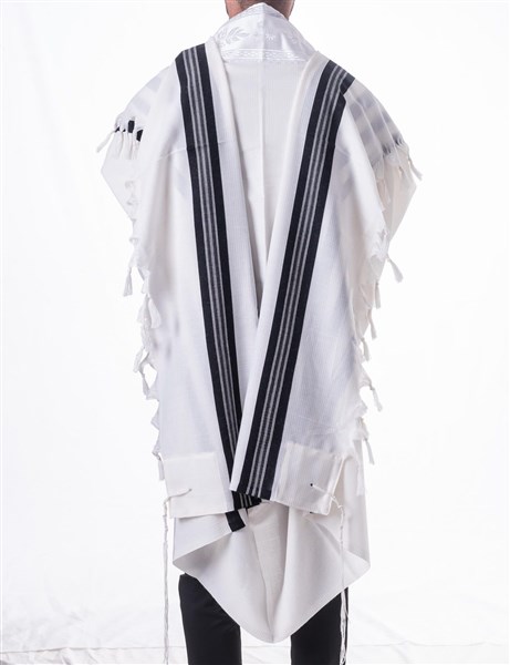 - הטלית מגיעה עם פתילים מהודרות כפול שמונה בעבודת מכונה קשירת הציציות כמנהג אשכנזים, על ידי יר”ש בהשגחת הרה”ג אריה לוין שליט”א רב מחלקת תשמ”ק ת”א.