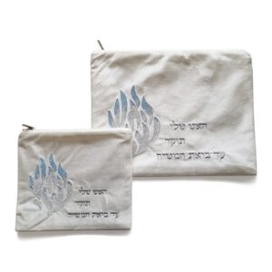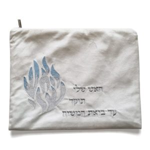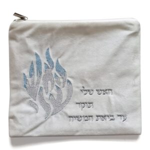 כיסוי לטלית ותפילין עשוי קטיפה לבן “האש שלי” רבי נחמן ברסלב